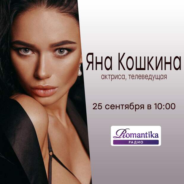 25 сентября в 10:00 гостем утреннего шоу на радио «Романтика» станет актриса и телеведущая Яна Кошкина!