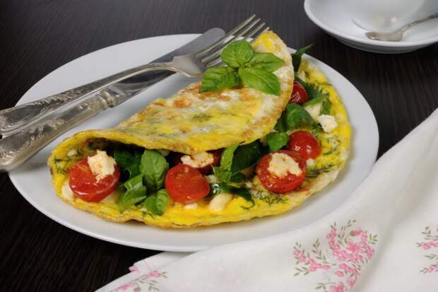 молоко – 50 мл яйцо – 2 шт зелень – 1-2 веточки укропа помидоры – 1 штПриготовление: яйцо взбить вилкой в пену. Добавить молоко, хорошо перемешать. Помидор очистить от кожуры, натереть на крупной терке или мелко нарезать. Добавляем помидор, измельченную зелень в общую массу. Нагреваем сковороду и выливаем получившуюся смесь.
