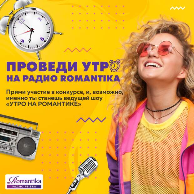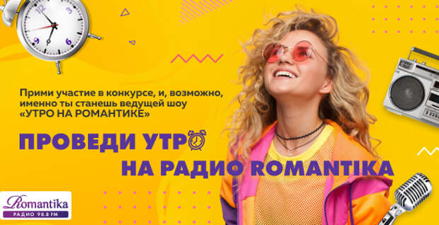 Участвуй в конкурсе «Проведи утро на Радио Romantika»! Заполни анкету на сайте и сними видео о себе, собирай лайки, и возможно именно ты станешь ведущей шоу «Утро на Романтике»!
