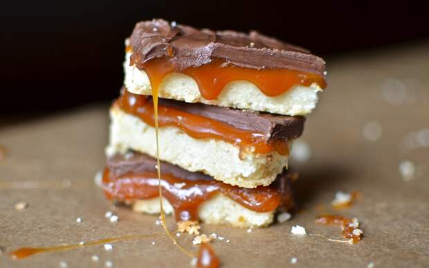 4. Теперь собираем батончик: смазываем печенье арахисовой пастой и убираем в холодильник на 30 минут.
