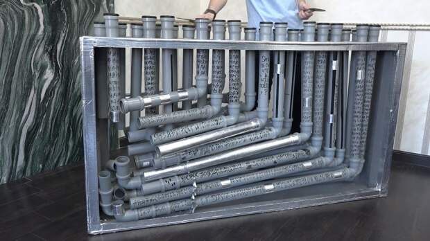 Вместе с учителями составил формулы. С их помощью рассчитал, какой длины и ширины должны быть трубы, чтобы получался звук нужной тональности.Чтобы сделать сантехнический орган потребовался месяц и 70 метров труб. Каждая, кстати, украшена цитатами из популярных песен.