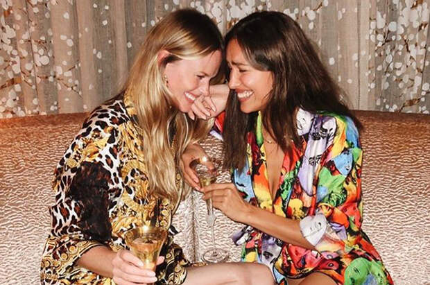 В начале октября Ирина Шейк встретилась с подругой, Анной Вьялицыной. Они поделились общими снимками на своих страницах в соцсети. Благодаря публикациям в сториз известно, что супермодели устроили застолье с канапе с черной икрой, а также шампанским. Для фотографий Ирина и Анна выбрали халаты от Versace.