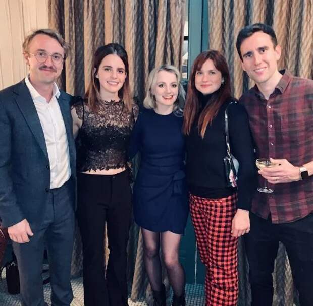 Помимо Фелтона вспомнить старые времена собрались Эмма Уотсон (Гермиона), Эванна Линч (Палумна Лавгуд), Бонни Райт (Джинни Уизли) и Мэтт Льюис (Невилл Долгопупс).
