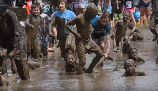 В американском штате Мичиган прошёл самый счастливый для всех детей праздник - праздник грязи. Смысл этого праздника довольно прост - сотни радостных и довольных детей плюхаются в огромную лужу грязи и кувыркаются там целый день, заряжаясь позитивом и отличным настроением. А родители их за это не только не ругают, а наоборот - хвалят, ведь настоящим королём или королевой грязи станет ребёнок, вымазавшийся в грязи так сильно, чтобы его было практически невозможно узнать даже собственным родителям.