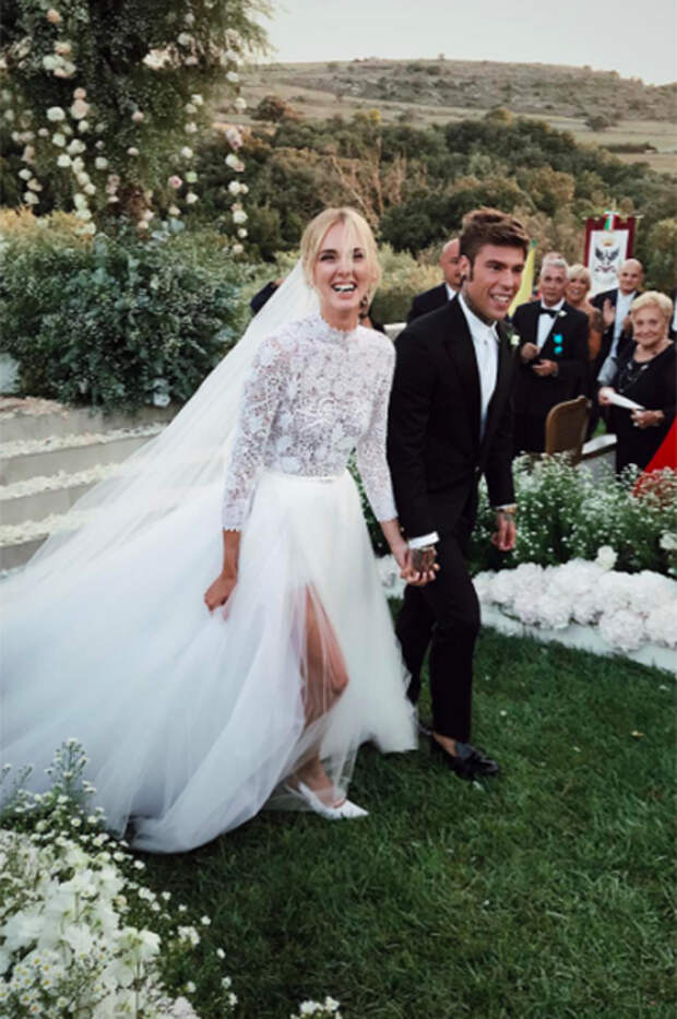 Кьяра Ферраньи — одна из самых известных и уважаемых фэшн-блогеров. В Instagram у нее 14 миллионов подписчиков, а кроме того, ее профессионализм признают крупные модные издания, например, Vogue. 31-летняя итальянка вышла замуж за музыканта Федерико Лючию, который на 3 года младше ее. Для свадьбы Кьяры было создано два уникальных платья от Dior, за чем следила директор бренда.