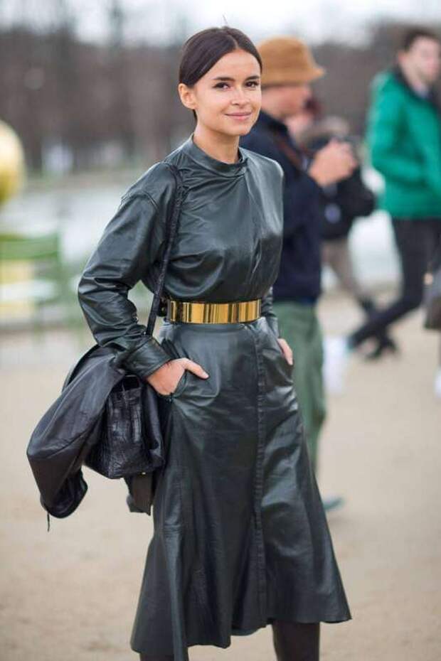 Кожаное платье – прекрасный вариант на осень. В нем вы будете смотреться не только модно, но и не замерзните. Кстати, этой осенью в тренде не только платья из кожи, но и брюки или юбки.