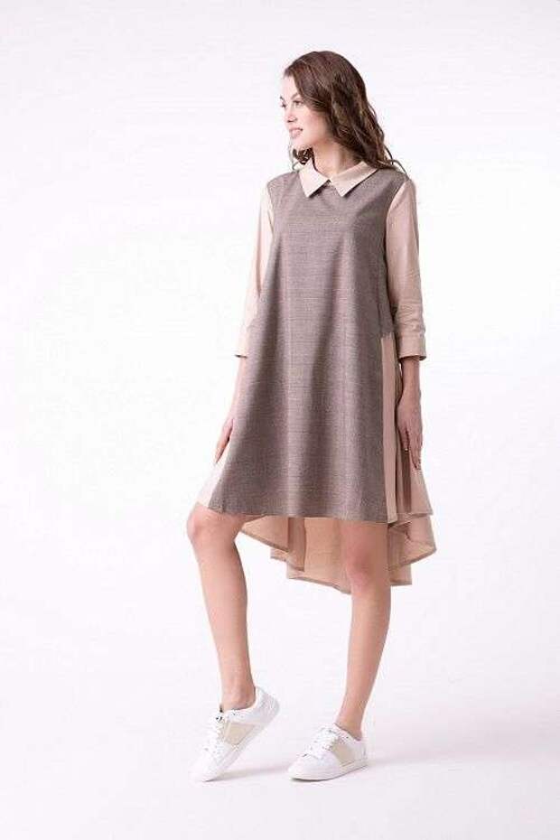 Трикотажное платье пусть и не такое теплое, как предыдущий вариант, но в нем очень комфортно. Кроме того, его можно носить с любой обувью – будь то сапожки на каблуке или ботинки.
