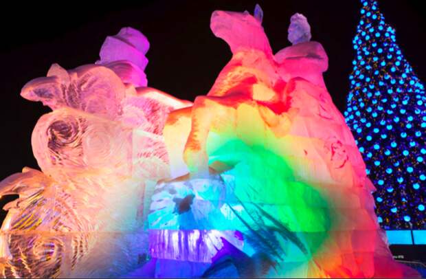 Если соберётесь посмотреть на всю эту красоту, сможете увидеть главную достопримечательность Рима – Колизей и московский собор Василия Блаженного. А ещё копию Кремлёвской стены с каскадом ледяных горок. Здесь, кстати, можно будет прокатиться с ветерком. Длина самой большой горки составит 100 метров. Каждый день гостей ждут концерты, спектакли и представления. Будет и балет, и гладиаторские бои, и китайское шествие с драконом. Фестиваль закончится в это воскресенье, а ледяные скульптуры простоят до весны – пока не растают.