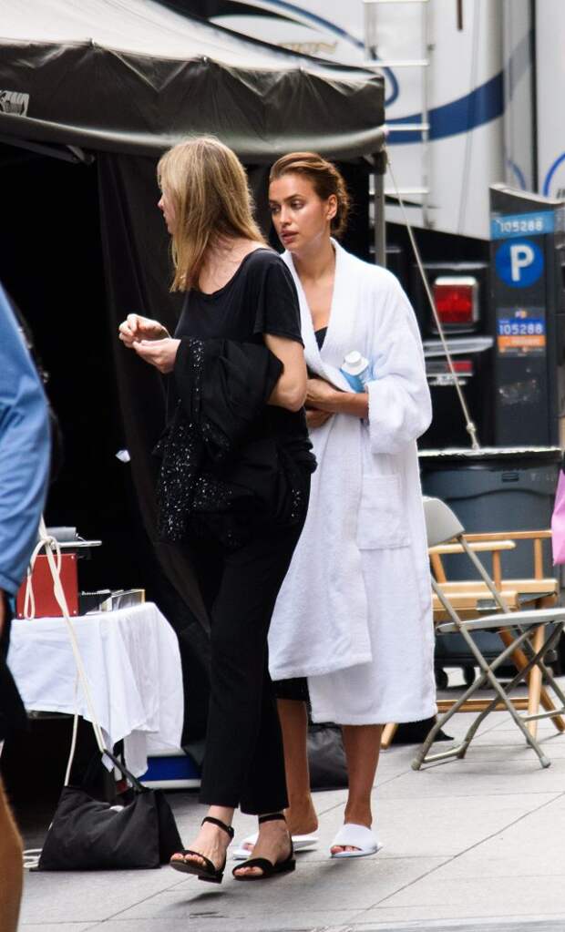 Папарацци запечатлели супермодель, проходящую по одной из известных улиц Нью-Йорка в одном халате. На самом деле, девушка шла на фотосессию, работа модели предполагает снимки в одном белье, чтобы не смущать жителей города, Ирина прикрылась халатом. Для какого бренда была сделала съемка пока не известно. К слову, чтобы Шейк поработала, заботливый супруг Бредли Купер сидел с маленькой дочерью Леей.