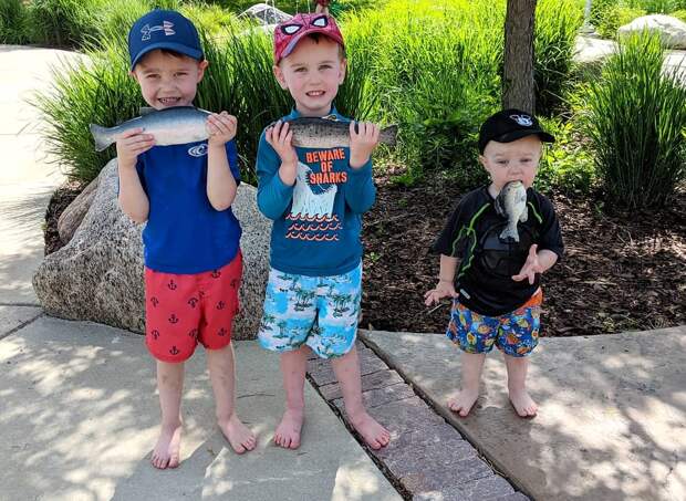 Забавное фото троих мальчишек, которые сфотографировались с рыбой, стало интернет-мемом. Всё дело в том, что двое мальчиков держат рыбу в руках и улыбаются, в то время как третий - самый младший - засунул рыбу себе в рот. В этот момент их мама Марика Дэниэлс и сделала фотографию.