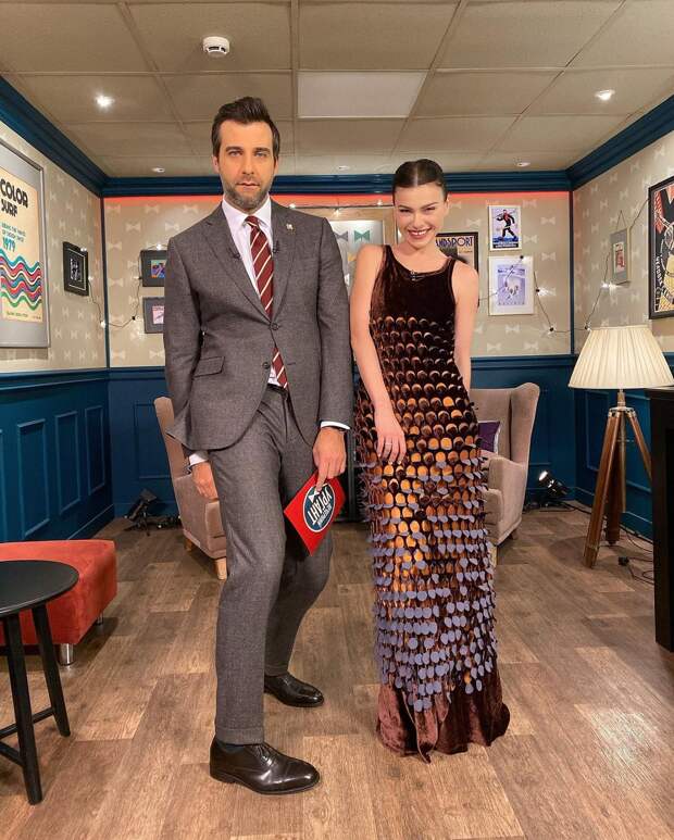 Если платье для вас слишком банальный и очевидный выбор, можно надеть что-то более сдержанное, но элегантное. Например, обладательница роскошной фигуры Ким Кардашьян подчёркивает свои достоинства обтягивающими брюками и топами. Брючный костюм или удобные джинсы можно дополнить блестящим топом, блузой с объёмными рукавами или курткой с бахромой (ещё один актуальный тренд сезона зима 20/21), как это сделала Вера Брежнева. И тогда casual-наряд превратиться в праздничный и эффектный.