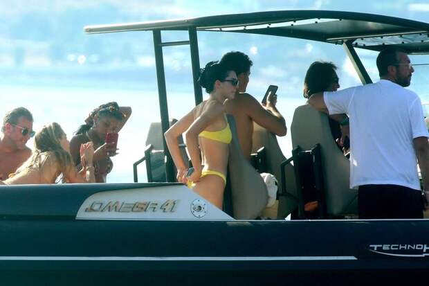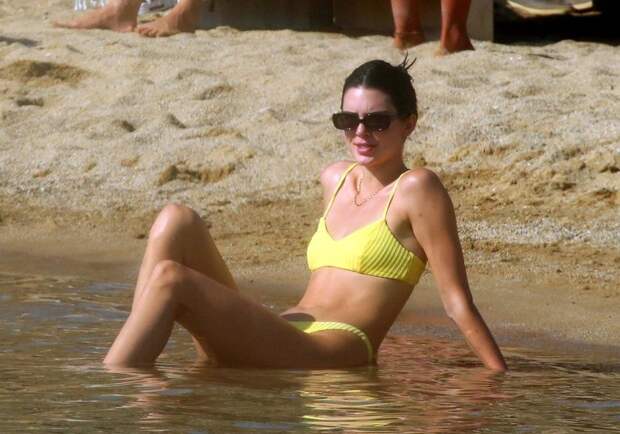 На опубликованных фото фигура Кендалл выглядит идеально, а бикини жёлтого цвета выигрышно оттеняет её загар. На фото Дженнер отдыхает под палящим средиземноморским солнцем в тёмных очках и с золотой цепочкой на груди, волосы приподняты вверх и собраны на затылке. После расслабленного отдыха на пляже девушка с друзьями отправилась покорять открытое море, где её снова сфотографировали папарации.