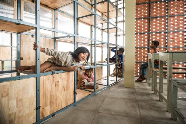 В городке Баттамбанг в Камбодже появилась школа-трансформер! Её стены - железный каркас, в нём стеклянные и деревянные блоки. Они легко передвигаются. Там, где нужно, появляются окна, полки и шкафы.