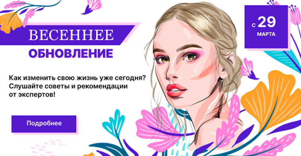 Весна — это отличное время для преображений! Что будет в моде этом сезоне, какие бьюти-процедуры сейчас актуальны, как согласно фэн-шуй должна выглядеть спальня и комплексы эффективных упражнений для стройной фигуры. Всю неделю с 29 марта по 2 апреля стилисты, врачи-косметологи, диетологи, эксперты... Далее